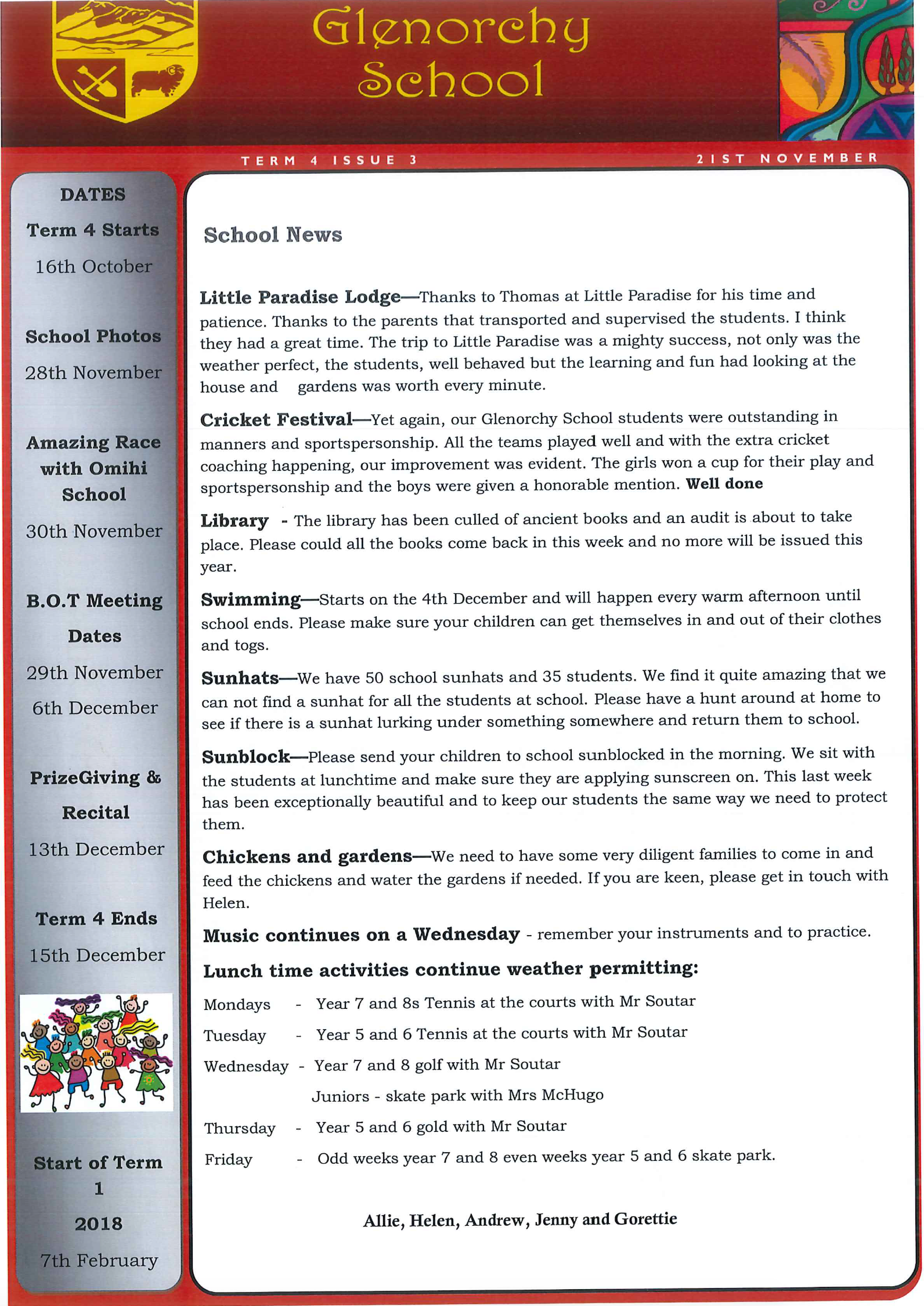 The Glenorchy School Newsletter is now available through the Glenorchy Community Website and has it's own FB page.
